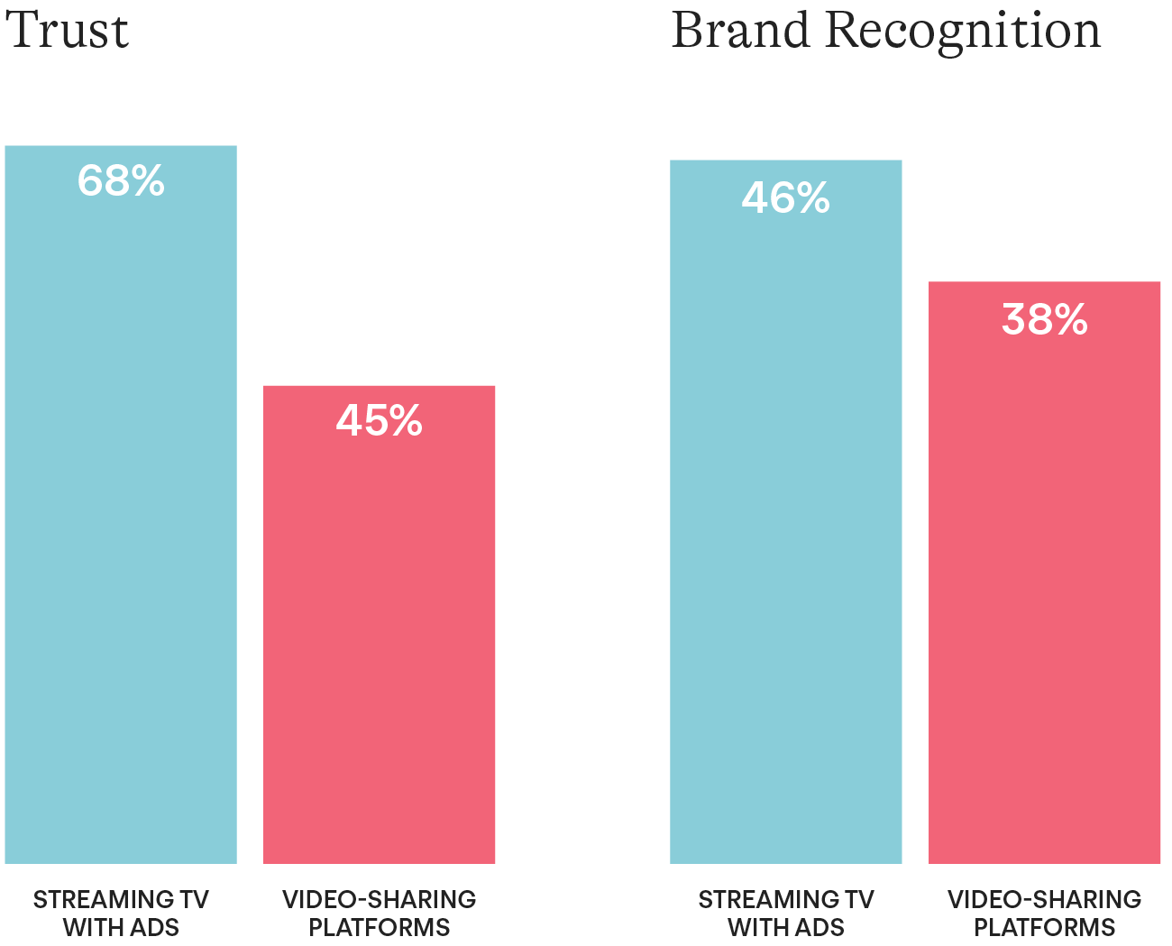 Streaming TV’s premium content generates more trust and brand recognition for advertisers than ads shown within content on Video-Sharing Platforms.