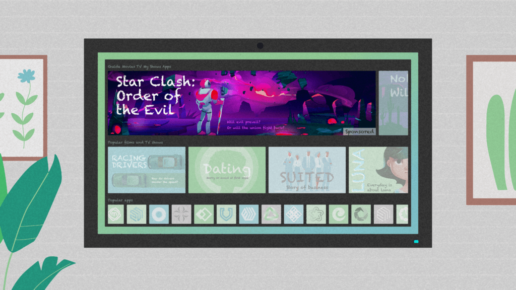 The home screen is often made up of a “hero” or a large image in a grid of “tiles” that includes apps, services and often suggested content. It acts as the jumping off point for content consumption. As a result, the smart TV home screen has become a key tool to improve user engagement – increasing the frequency and length of streaming sessions – to increase average revenue per user.