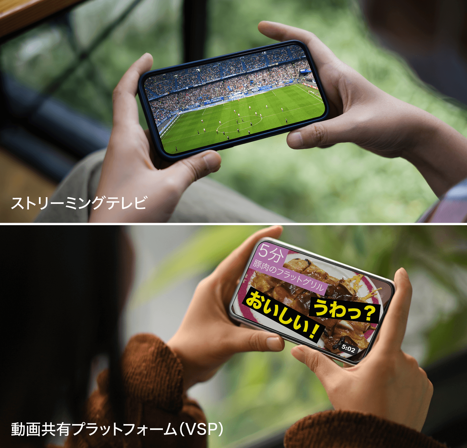 ストリーミングテレビ のコンテンツは高品質で長時間の番組です。 → 例:テレビ番組、映画、スポーツ中継、ニュース